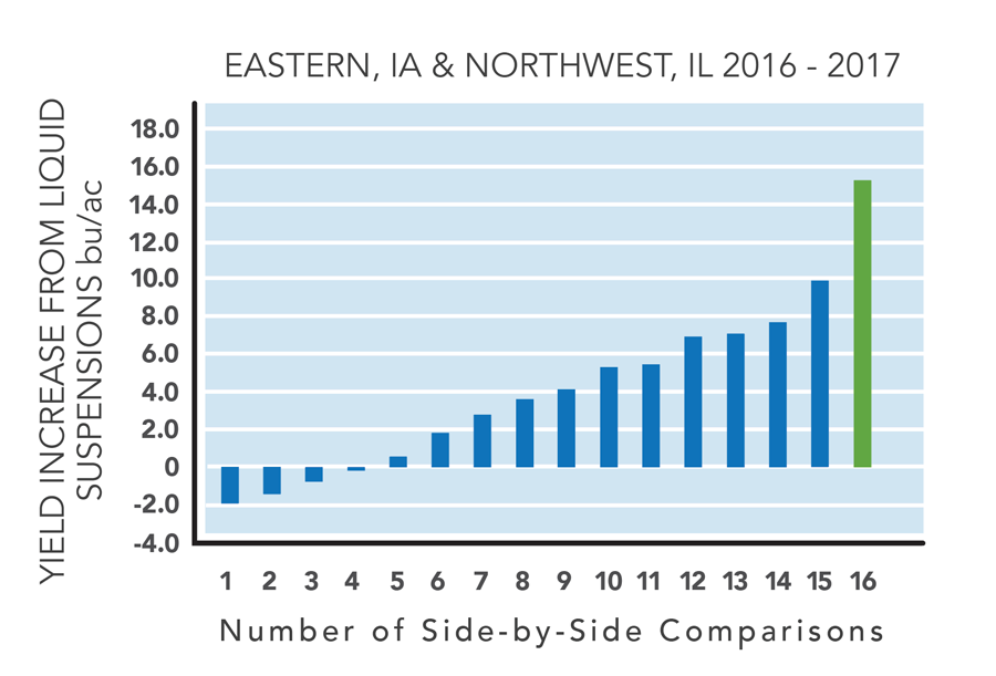 In 74% of the side-by-side comparisons, surface-banded liquid suspension fertilizers produced more corn grain than equivalent rates of dry broadcasted granular fertilizers.